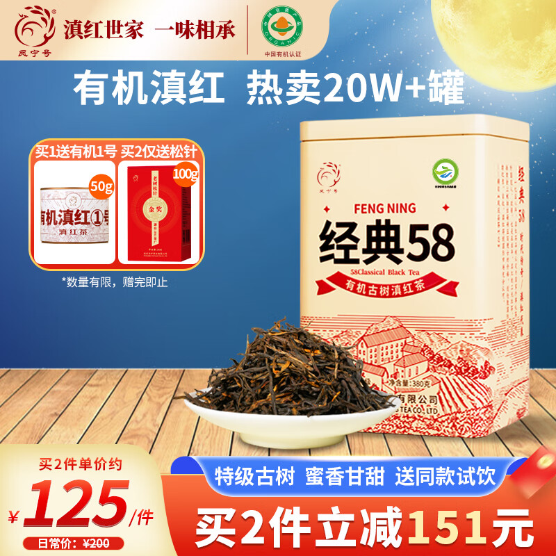 凤宁号红茶经典58特级凤庆滇红茶云南有机古树滇红金针2025新茶叶自己喝 【升级款】单罐装380g
