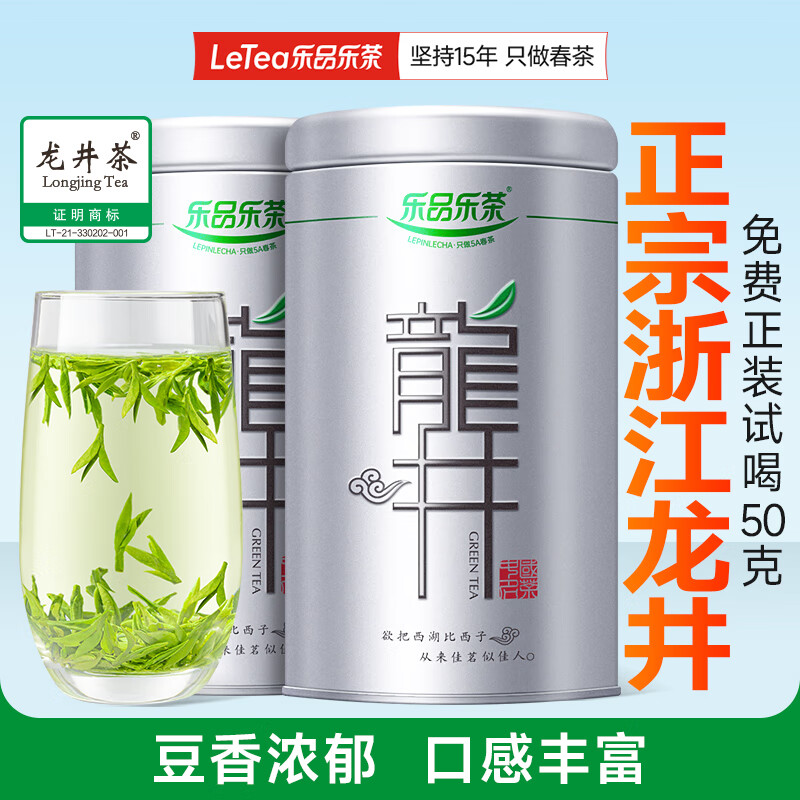 乐品乐茶正宗龙井茶叶绿茶 豆香味明前春茶散装自己喝【100g*2罐】