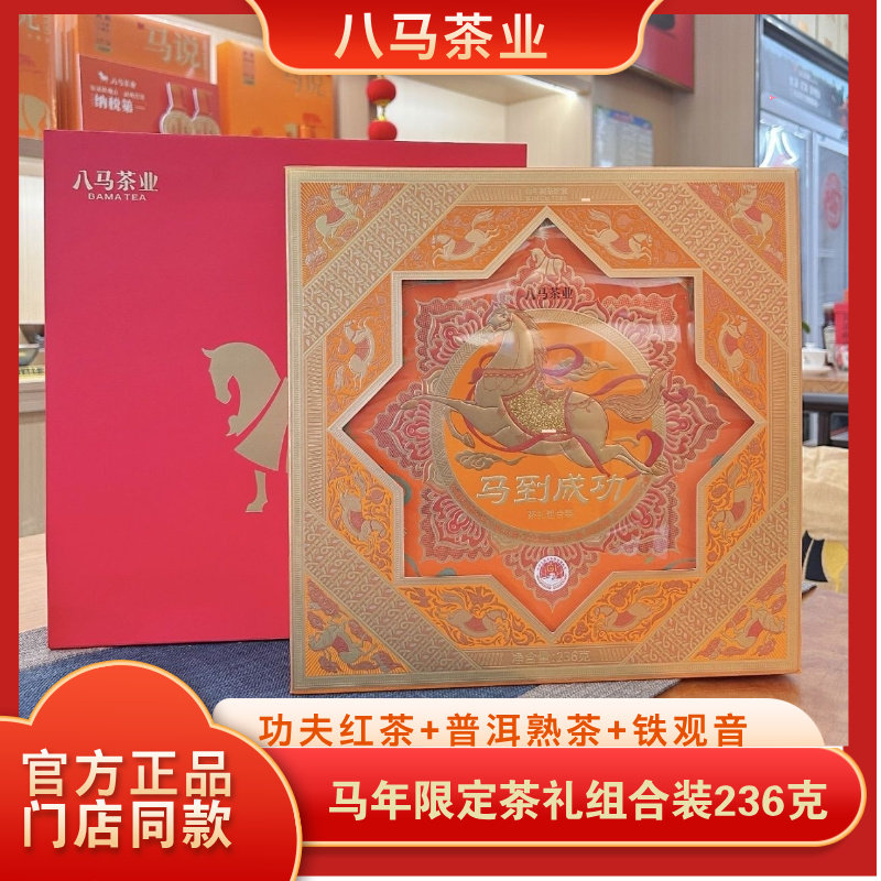 八马茶叶马到成功茶礼组合装功夫红茶+普洱+铁观音236g官方旗舰店