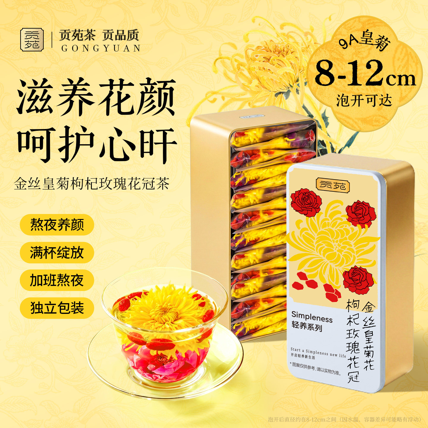 贡苑玫瑰菊花枸杞茶金丝皇菊冠茶熬夜养生茶包大朵茶男女官方旗舰