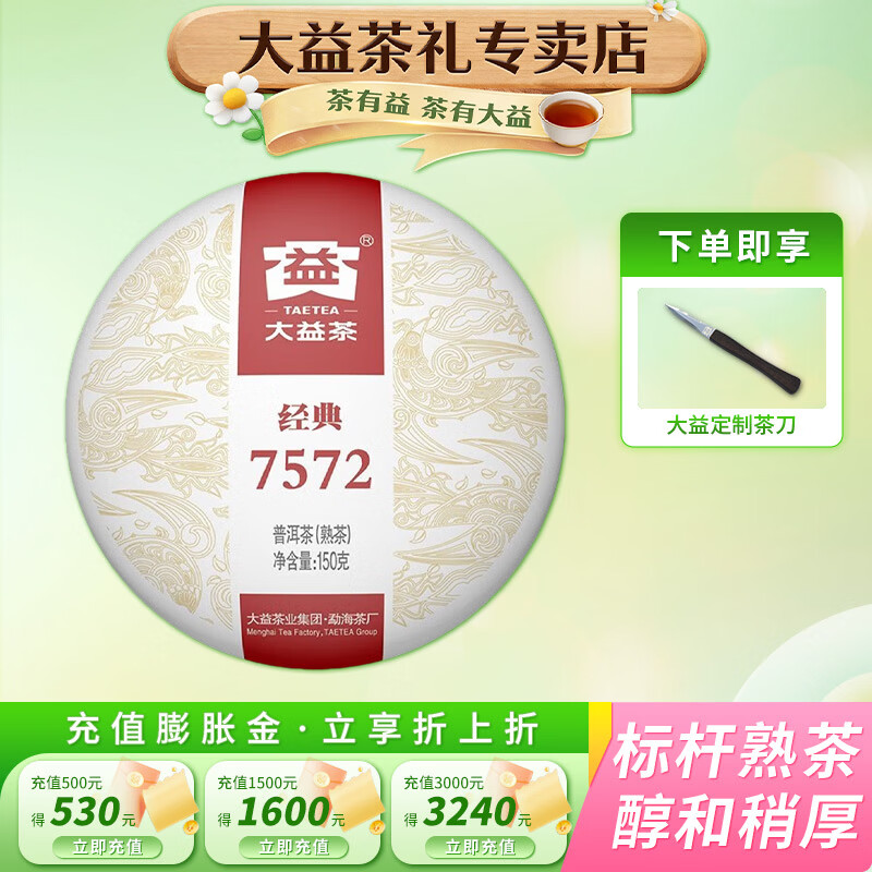 大益 茶叶 普洱茶 7572 经典标杆熟茶 自饮 精致小饼 单饼装 150g*1饼