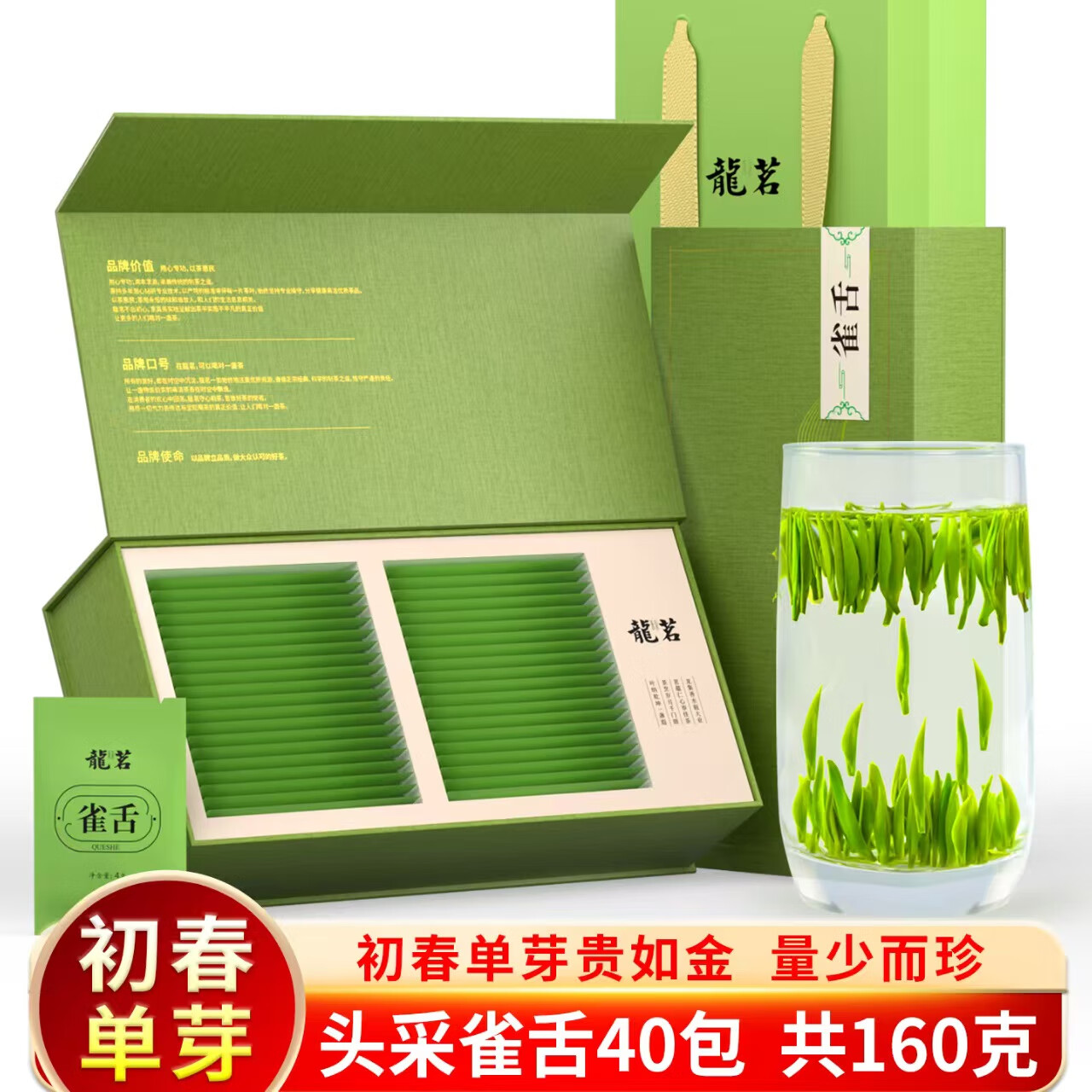 龍茗2025年新茶特级雀舌明前绿茶锁鲜小袋茶叶礼盒小包装40袋*4克