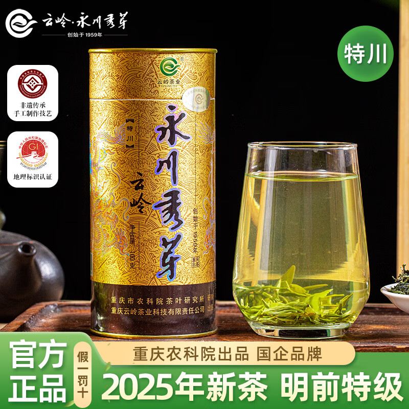 云岭茶业永川秀芽 2025新茶茶叶绿茶明前春茶重庆特产(特川)100g圆听装