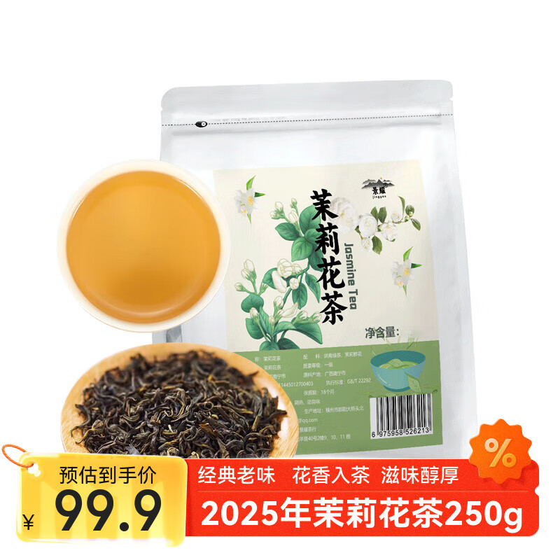 指尖叙茶叶 办公室口粮茶 高山茶叶 自己喝的茶叶 茉莉花茶2025新茶飘雪浓香型 250g*1袋