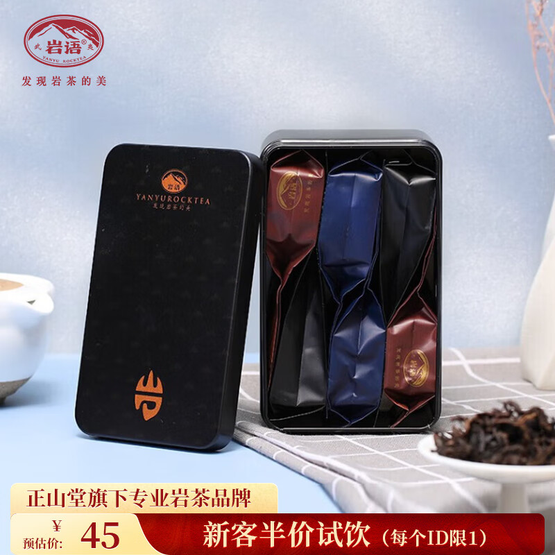 岩语正山堂武夷山 大红袍 茶叶 肉桂 组合试喝装 武夷岩茶 特级口粮茶 黑罐岩茶组合 48g*1盒
