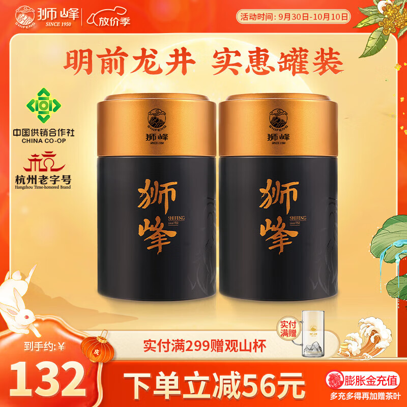 狮峰牌2025新茶上市龙井茶明前一级绿茶茶叶杭州特产43罐装100g自己喝 两罐装