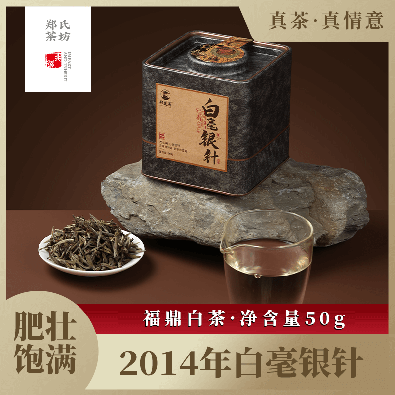 郑莲英茶叶福鼎白茶2014年特级白毫银针自己喝散茶罐装10年老白茶