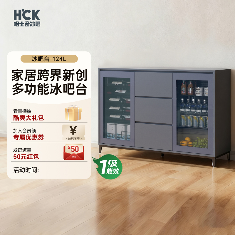 HCK哈士奇冰吧台红酒柜超薄餐边柜冰箱一体家电套装客厅茶叶冰箱