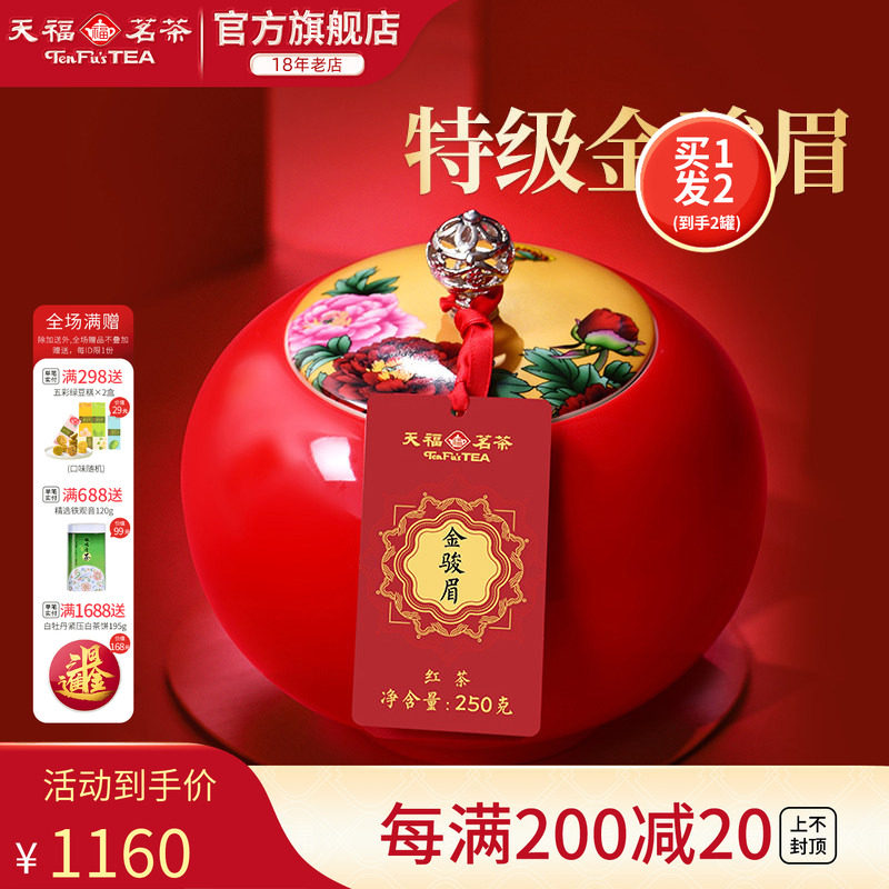 天福茗茶金骏眉红茶武夷山特级茶叶瓷罐茶叶礼盒250g*2罐年货送礼