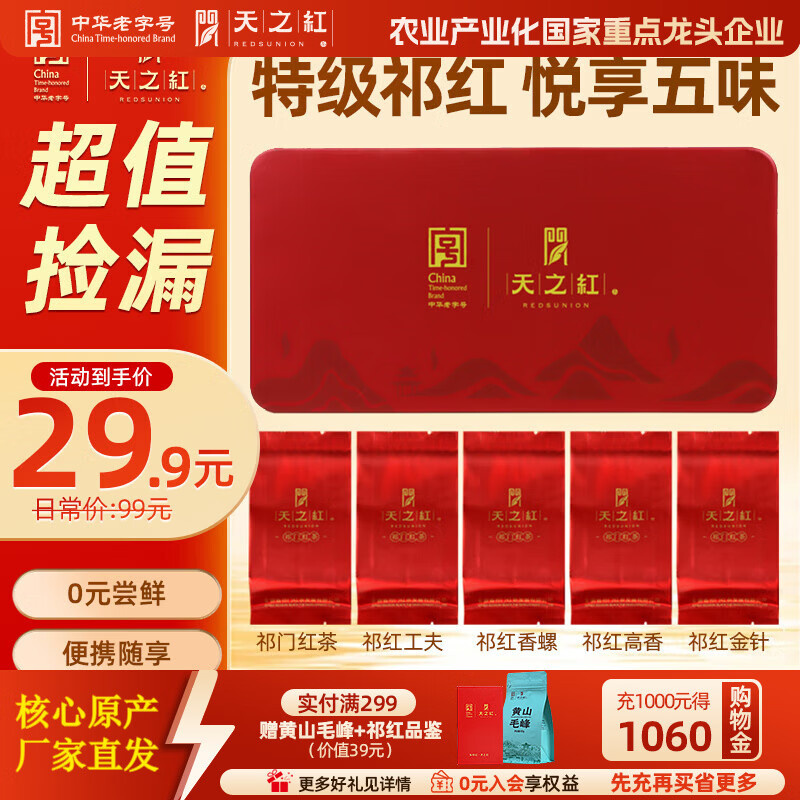 天之红 茶叶红茶特级祁门红茶 五味祁红组合伴手礼20g