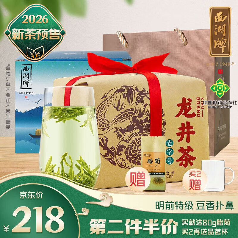 西湖牌2026新茶预售茗茶 绿茶明前特级龙井茶传统纸包200g 春茶