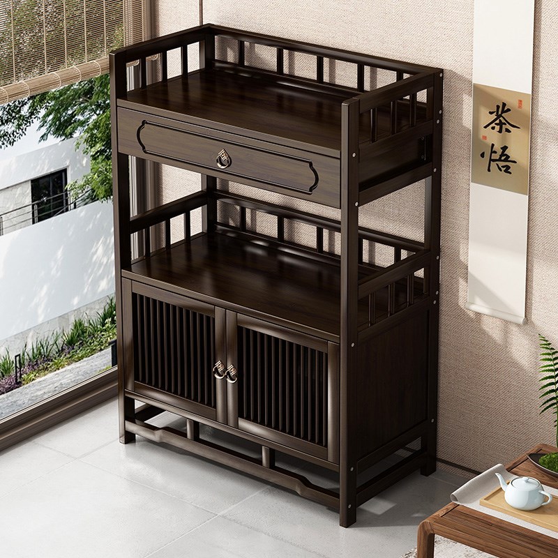 茶水柜置物架实木多层茶叶柜茶具收纳置物架茶边柜置物架茶台边柜
