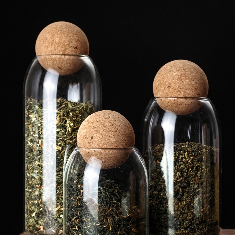 茶叶罐家用密封小茶罐收纳球塞瓶玻璃瓶空储茶罐圆形软木塞茶叶桶