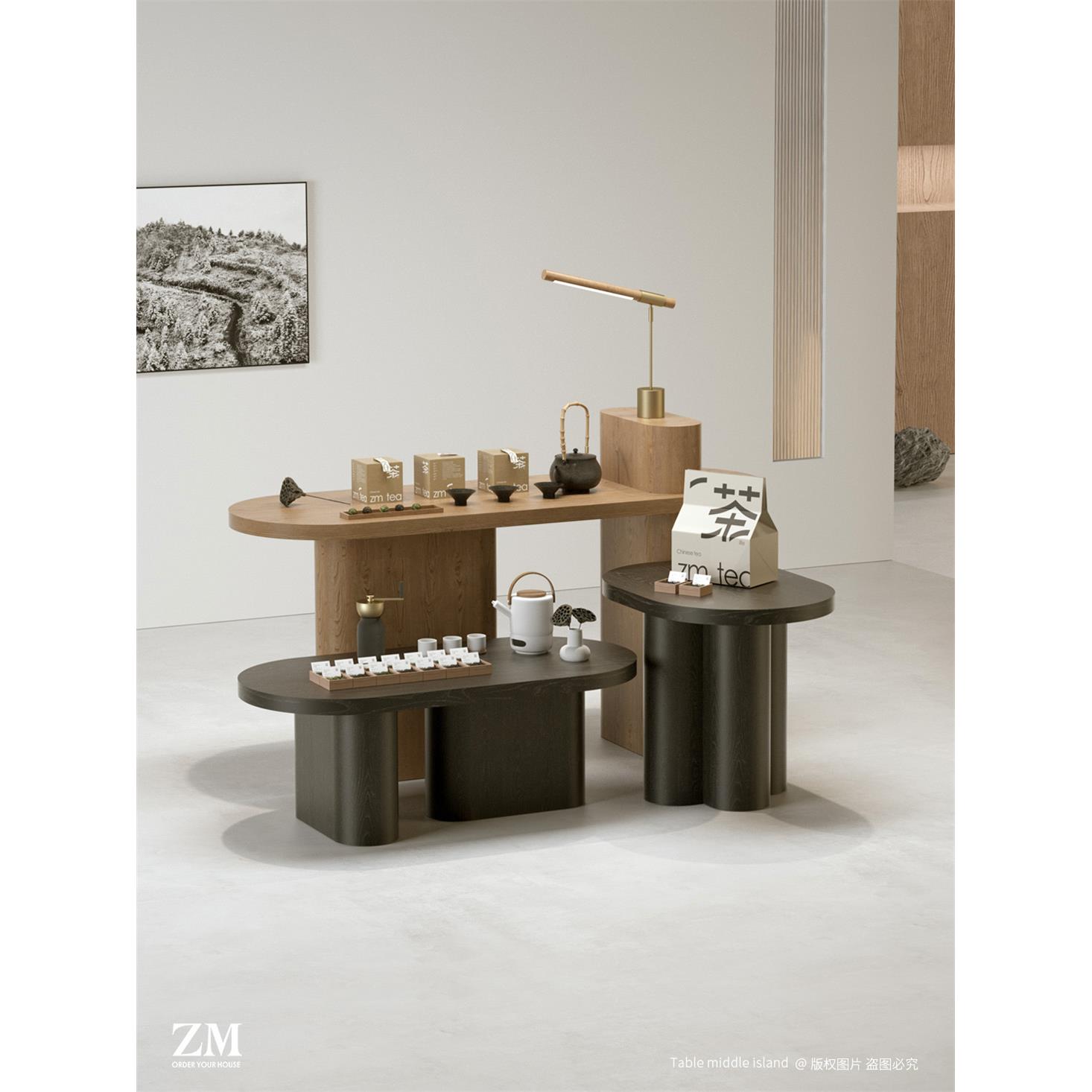 简约茶叶店铺高低流水台产品茶具展示柜促销展示台中岛柜陈列货柜