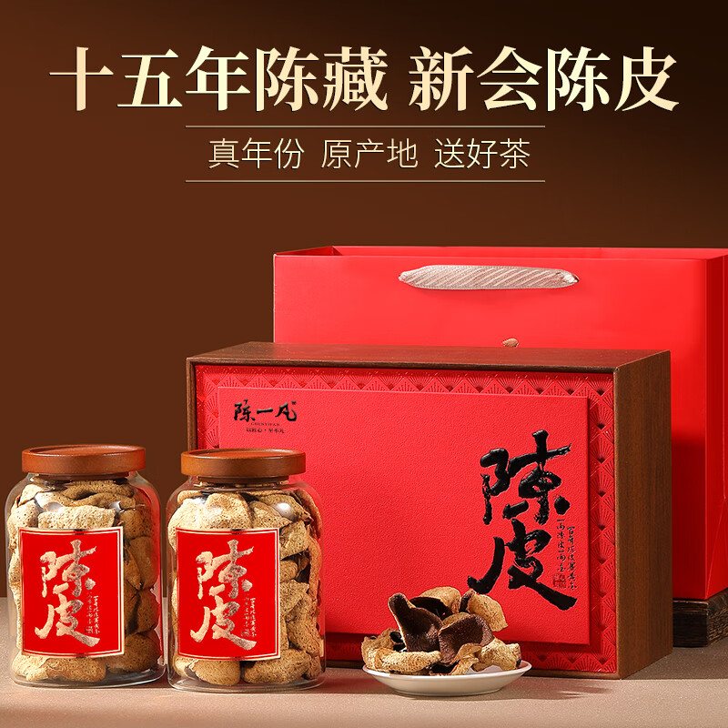 陈一凡茶叶礼盒装中秋礼盒正宗新会陈皮茶15年自然陈化老陈皮送礼150g