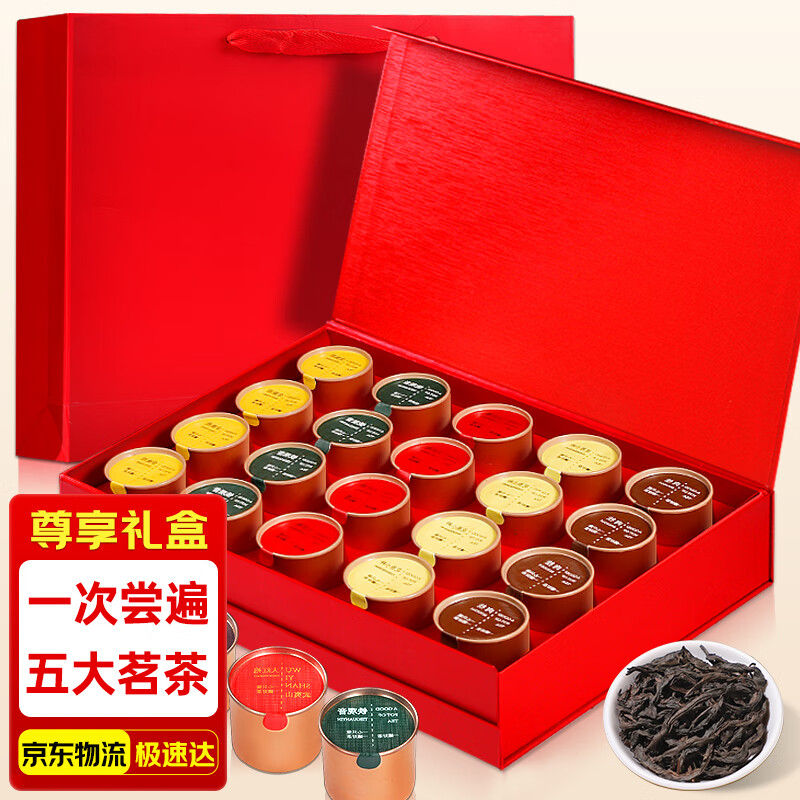 茗愿茶叶组合礼盒 红茶金骏眉大红袍正山小种铁观音肉桂中秋节送长辈 【五大茗茶礼盒共20罐】 金骏眉+铁观音+大红袍+小种+肉桂