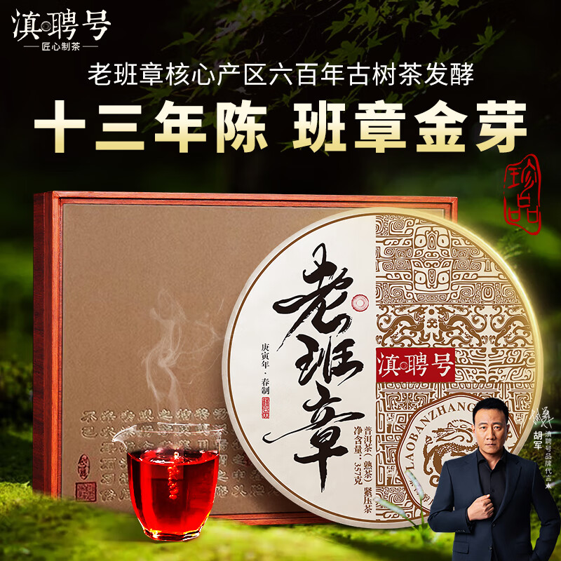 滇聘号老班章普洱茶熟茶十年以上云南勐海七子饼茶古树茶叶礼盒送礼357g