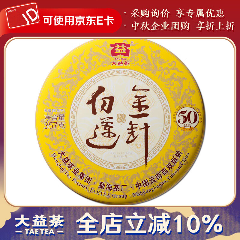 大益茶叶 普洱茶 熟茶 金针白莲 普饼 357g/饼 2301批次50周年一饼