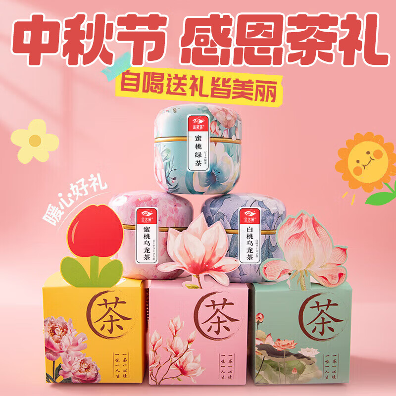 金茗溪中秋节礼品礼物实用花茶礼盒蜜桃乌龙茶水果茶包花果茶冷泡茶叶 【蜜桃+白桃+绿茶】 中秋节【精致礼盒3罐】