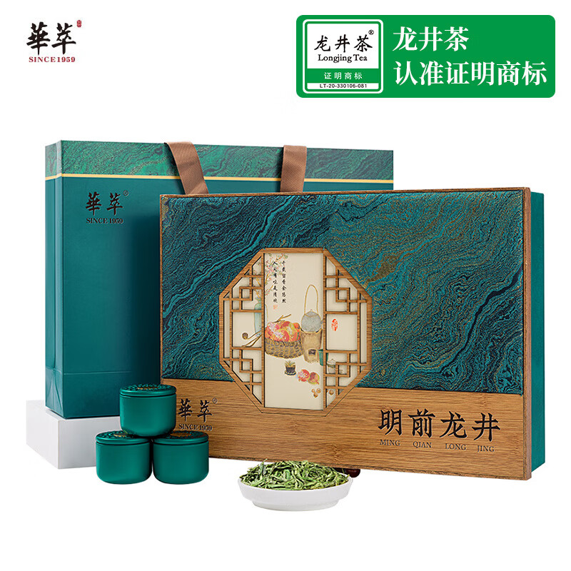 華萃茶叶礼盒送人龙井绿茶小罐装新茶特级明前送长辈老丈人领导240g 【独立小罐】特3A级明前龙井150g