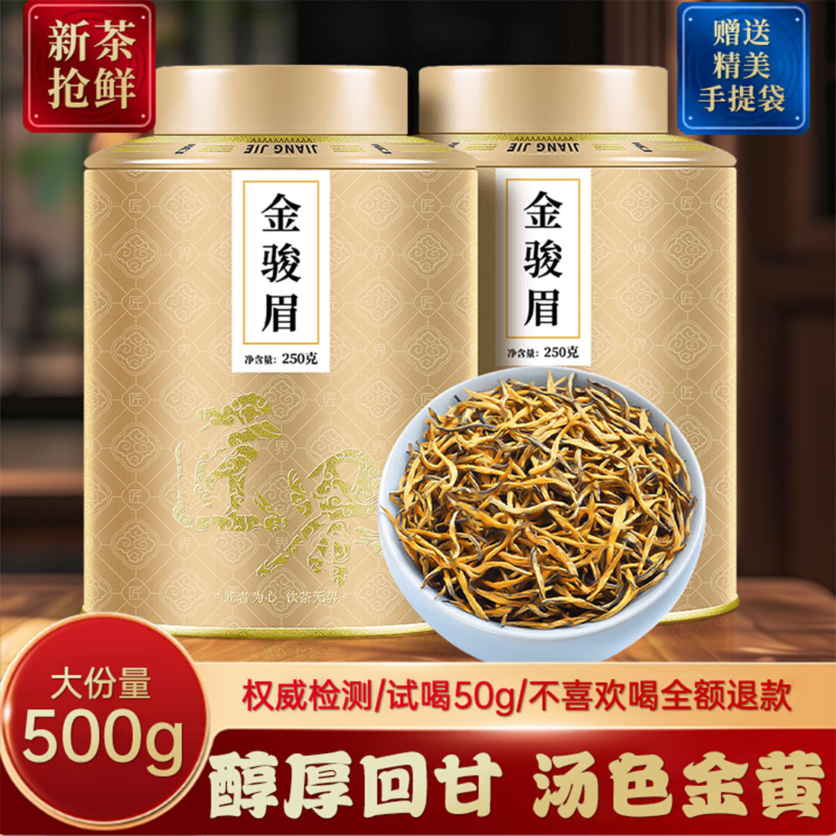 匠界茶叶金骏眉红茶浓香蜜香黄芽罐装节日礼盒特级蜜茶500g中秋送礼