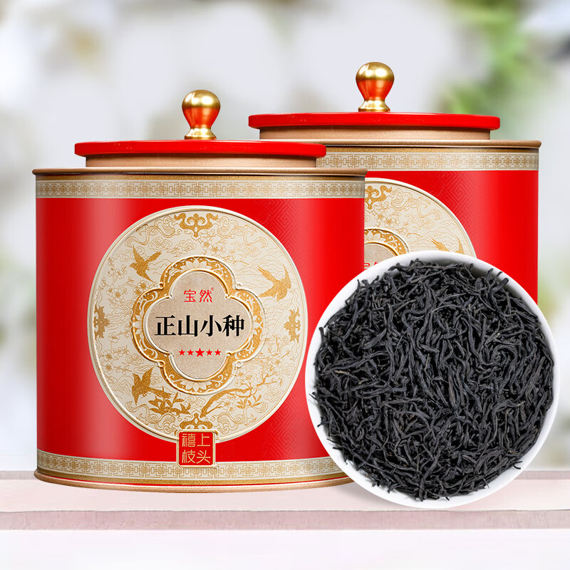 宝然茶叶新茶福建武夷正山小种红茶礼盒装新春茶礼500g 正山小种500g共2罐配礼品袋