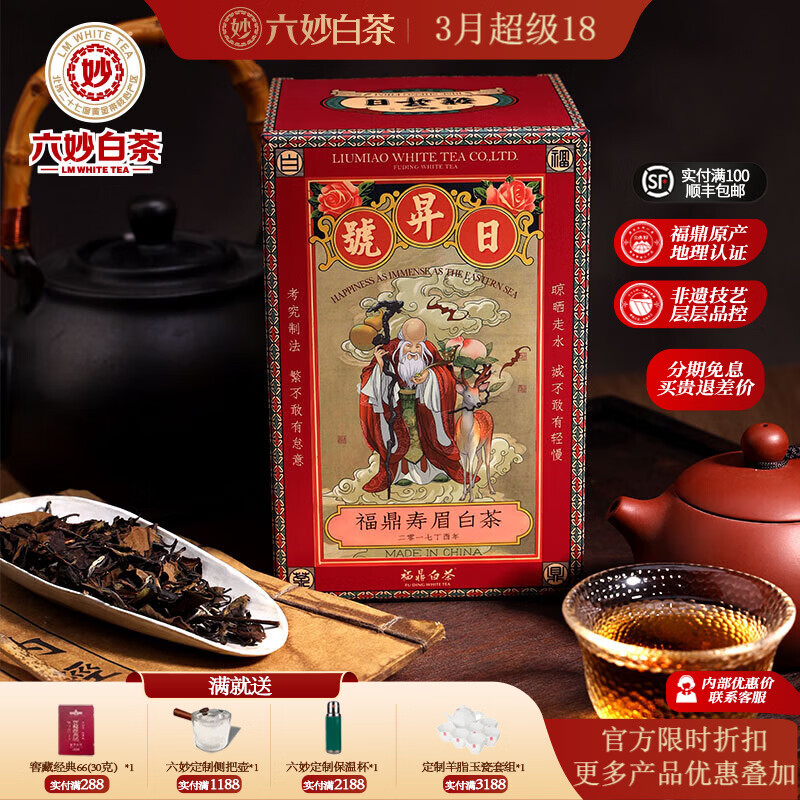 六妙白茶日升号寿眉白茶2017年一级老树寿眉福鼎老白茶8年老茶 8年一级寿眉 100g*1盒