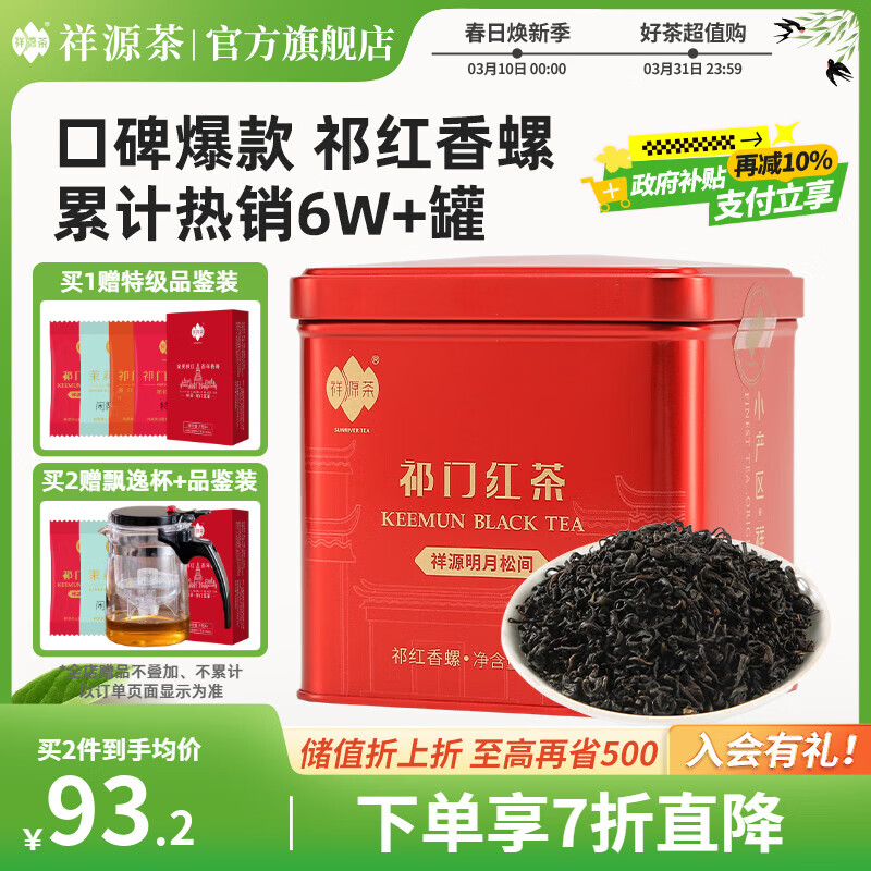 祥源茶 明月松间祁门红茶 特级正宗蜜香祁红香螺 伴手礼茶叶自己喝送礼 2025新茶 经典大红罐装150g