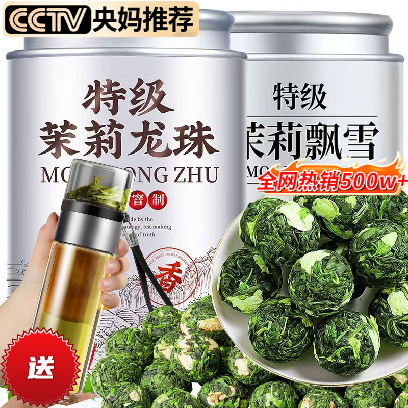 仲千禧胖东来同款茉莉花茶叶特级自己喝茉莉龙珠超市茶叶茉莉飘雪浓香型 【比普通花茶浓香9倍】 250g*1罐 特级茉莉龙珠【9A浓香型】 二罐共500··克