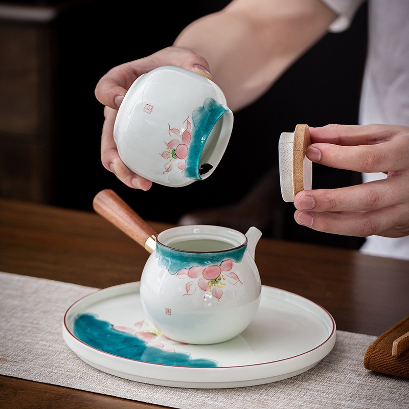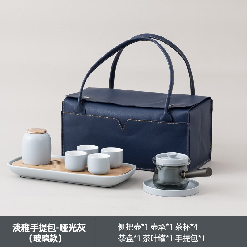 手绘便携式侧把壶旅行茶具套装功夫茶具一壶四杯带茶叶罐带茶盘
