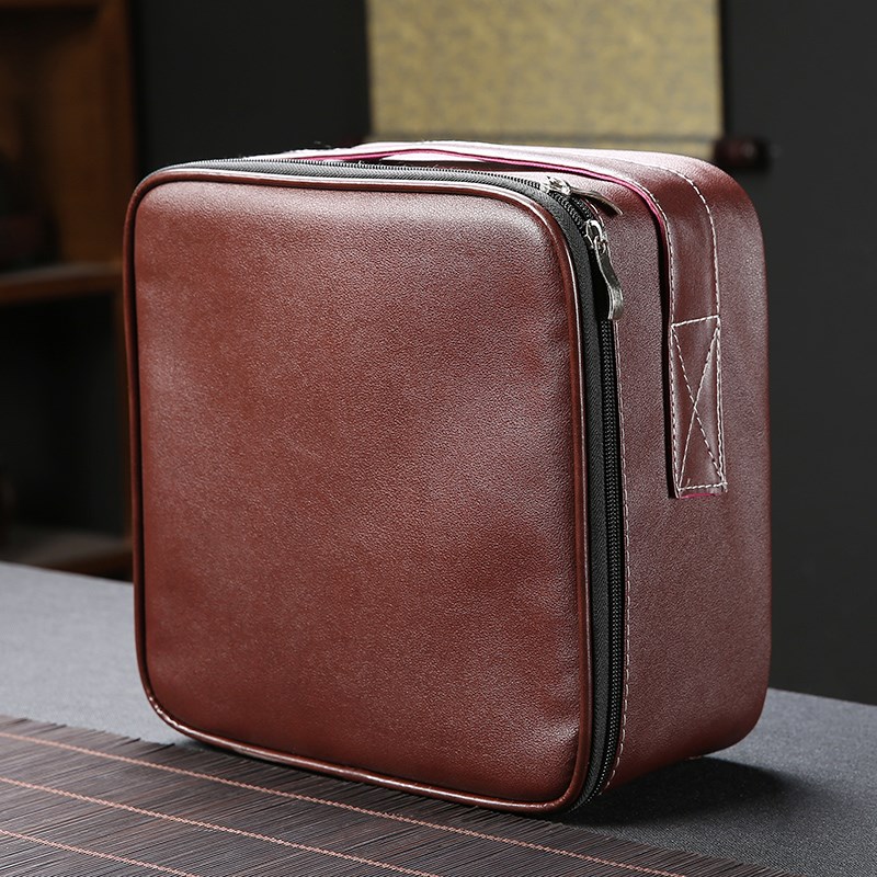 中式简约旅行茶具黑陶茶叶罐壶茶杯过滤整套茶盘便携皮包礼品定制