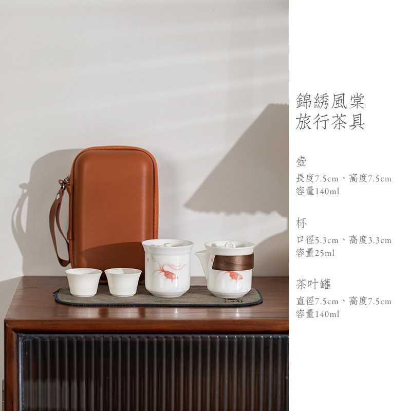 富贵锦鲤羊脂玉瓷旅行茶具仿烫一壶二杯茶叶罐陶瓷户外便携式套装