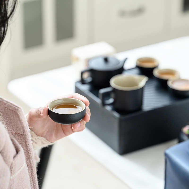 黑陶简约功夫茶具套装一壶四杯茶叶罐茶盘户外车载旅行便携收纳包