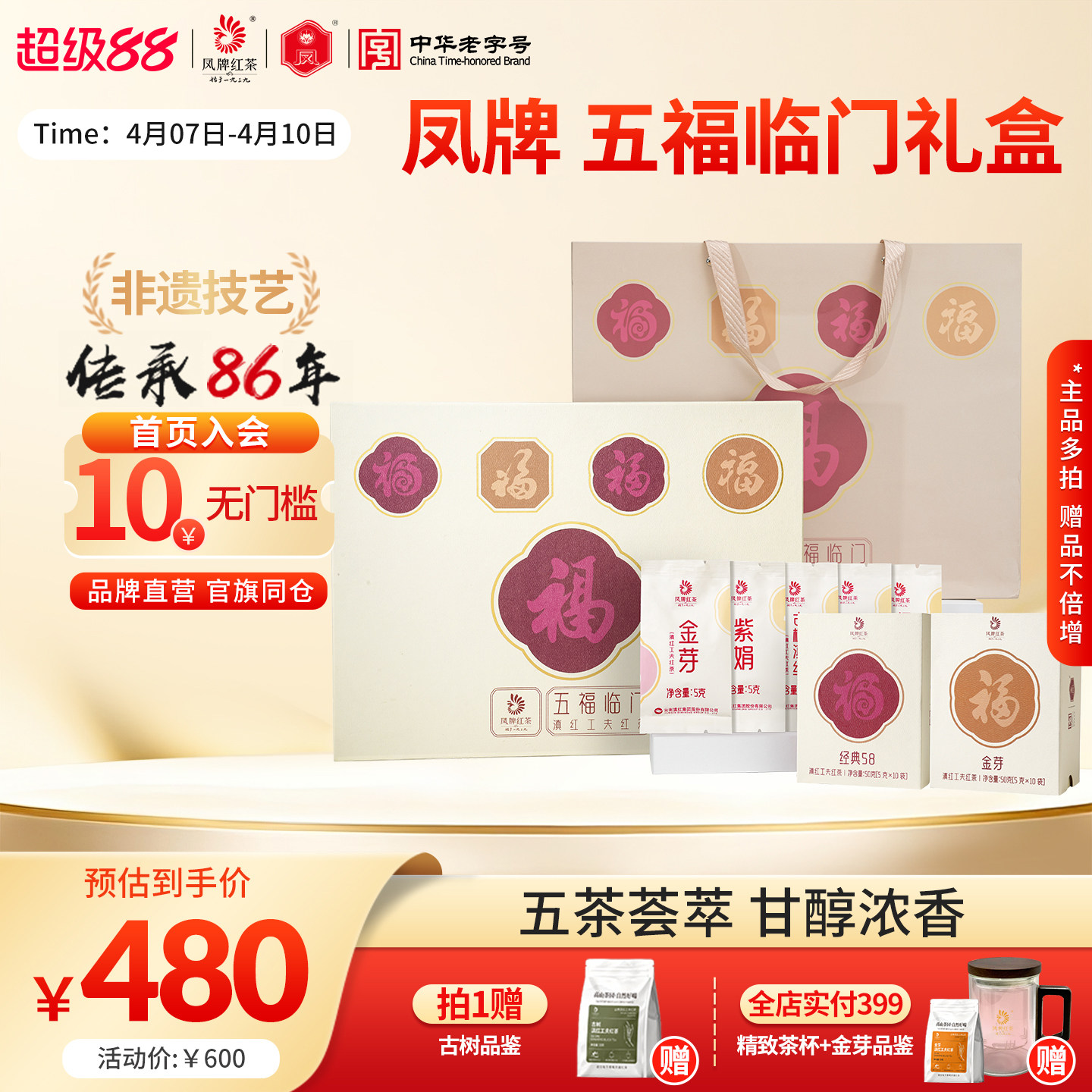 凤牌红茶礼盒五福临门250g礼盒装云南滇红茶叶礼盒节日送礼长辈
