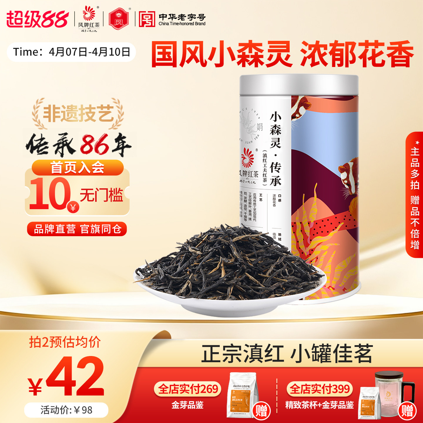 凤牌红茶正宗凤庆滇红茶一级工夫浓香云南小森灵传承50g罐装送礼