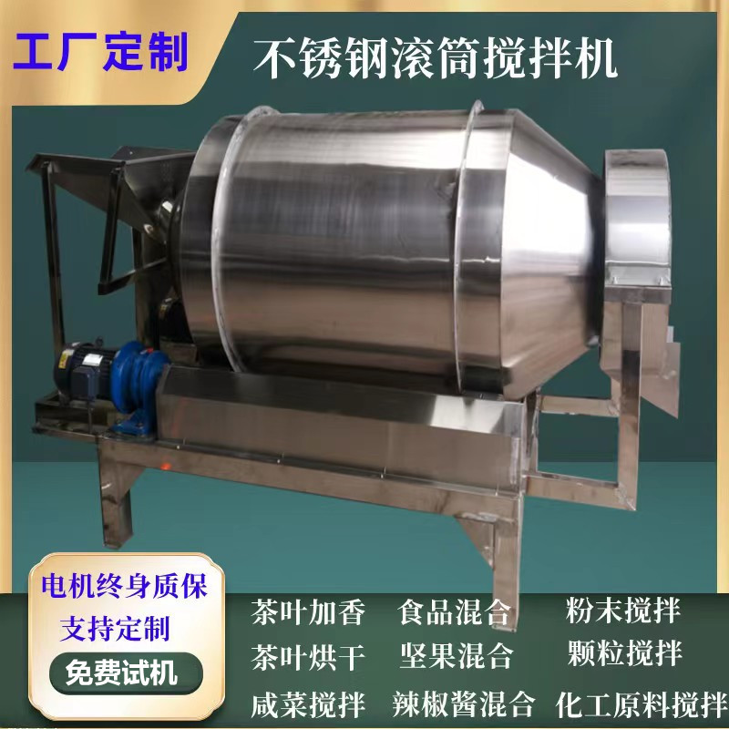 茶叶浴盐加香烘干搅拌机食品咸菜混合搅拌机卧式不锈钢滚筒搅拌机