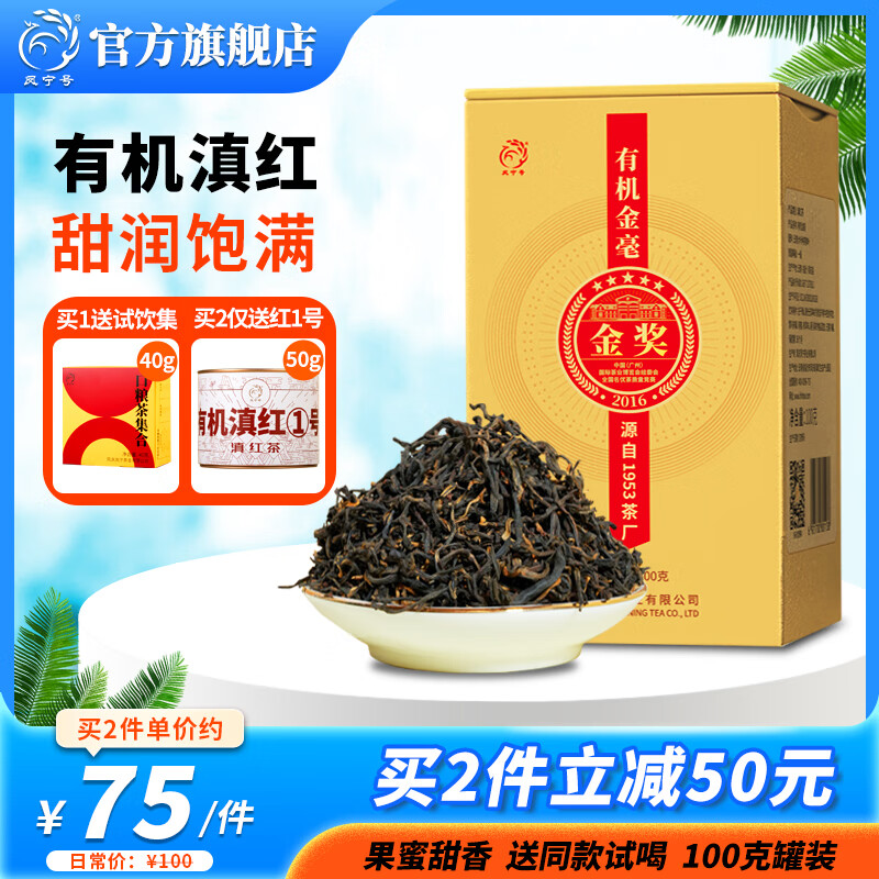 凤宁号红茶有机金毫凤庆滇红茶云南有机滇红茶蜜香型口粮茶叶送礼自己喝 单罐装100g