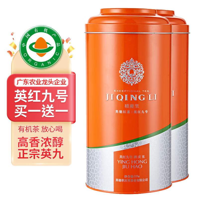 积庆里有机红茶英德英红九号红茶大罐装一级浓香型工夫红茶茶叶醇雅225g