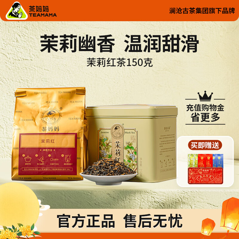 茶妈妈 茉莉红茶 云南滇红茶 高山功夫大叶种红茶 散茶调味茶叶 茉莉红150g*1罐