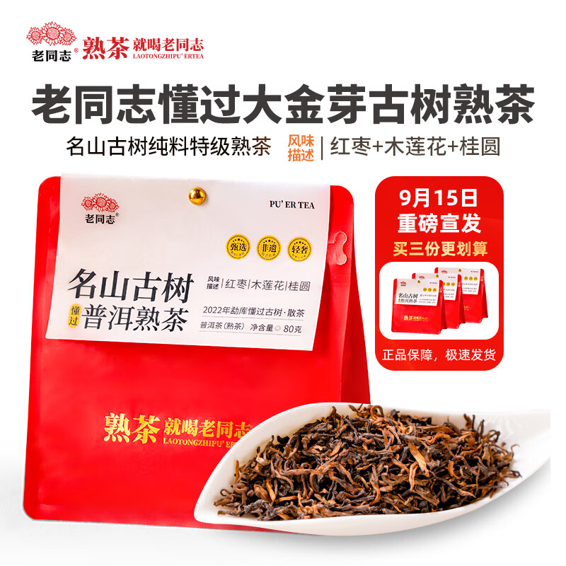 老同志茶叶普洱茶熟茶古树散茶 特级纯料懂过熟茶自己喝送礼品质茶80克 单袋