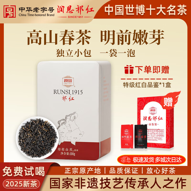 润思祁门红茶特级祁红香螺高档茶叶自饮待客送礼送长辈独立小包装100g