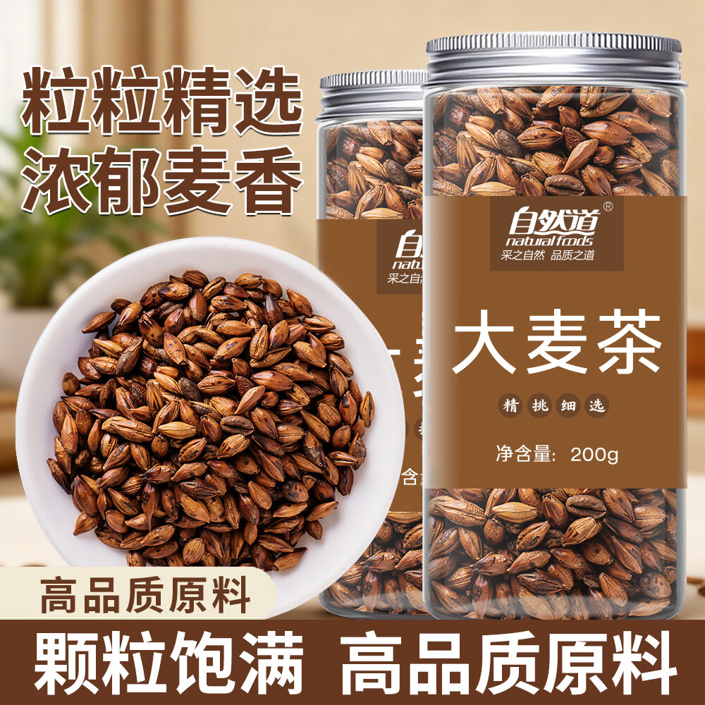 自然道罐装大麦茶大颗粒麦香浓郁原味烘焙型泡水 200g*3罐(锁鲜罐装)J