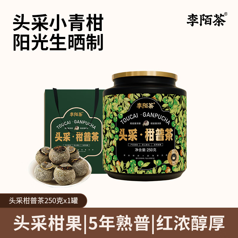 李陌茶小青柑 陈皮普洱熟茶 正宗新会小青柑普洱茶 茶叶礼盒送礼 【头釆小青柑】250g*1罐