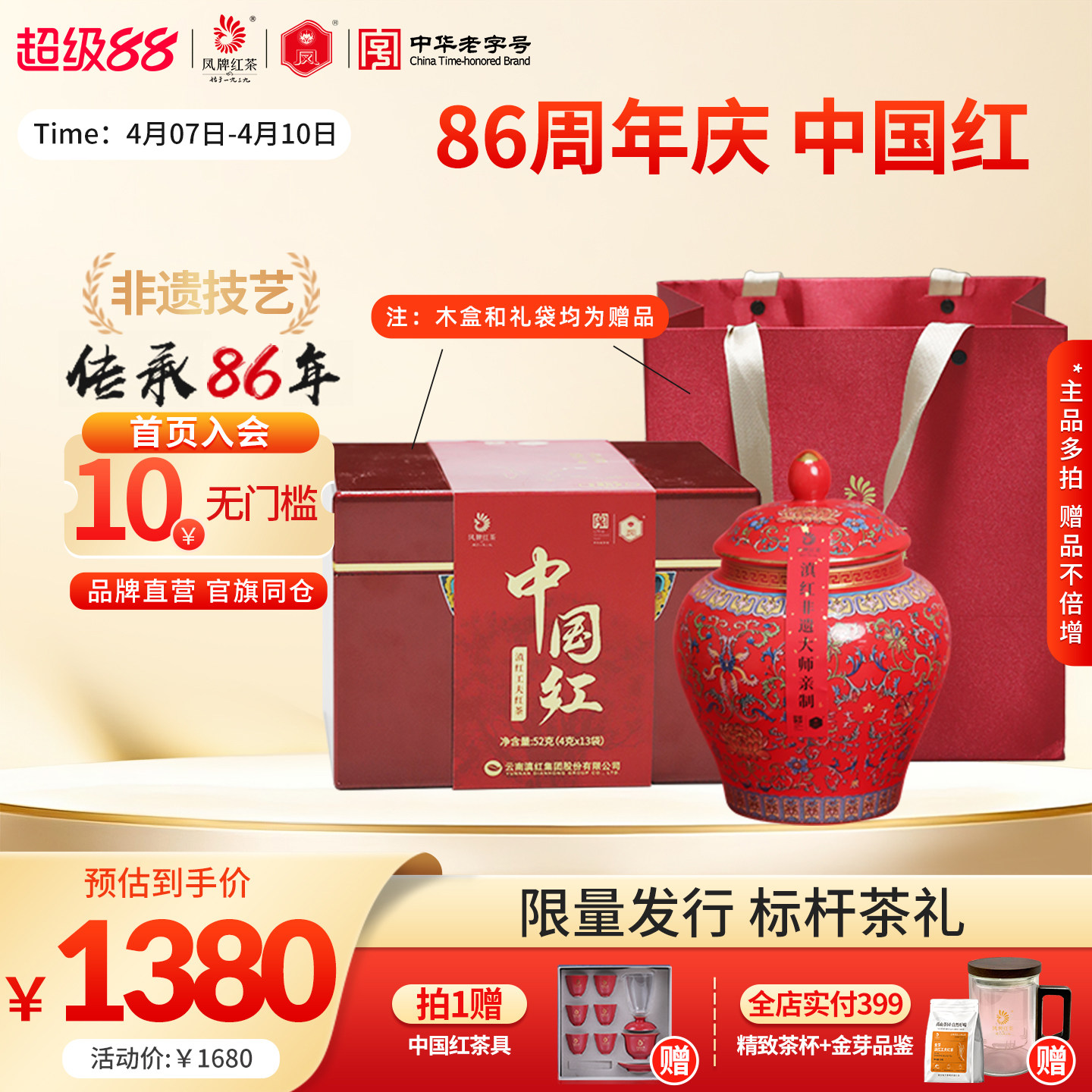 【周年纪念】凤牌红茶正宗滇红中国红老字号特级浓香云南茶叶送礼
