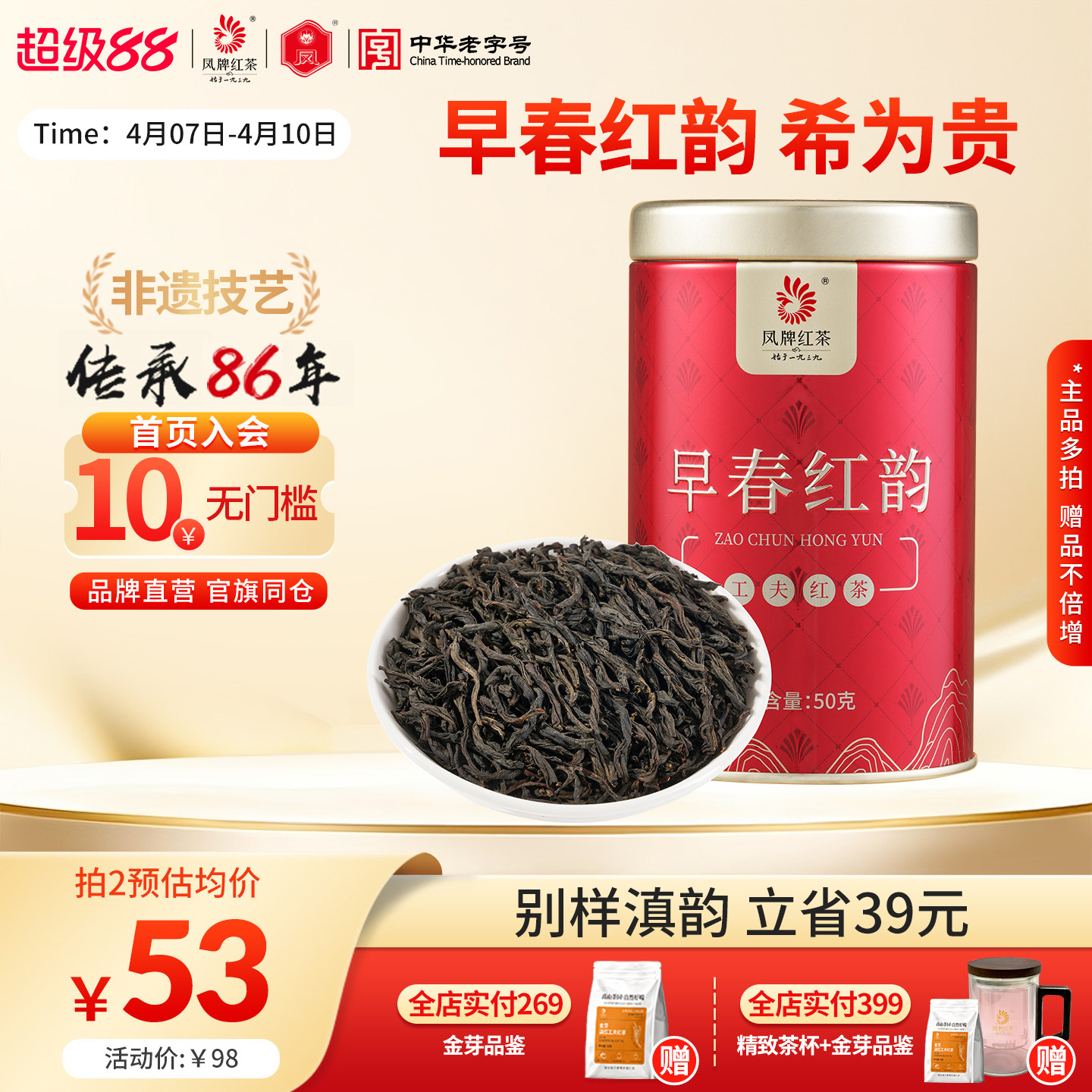 凤牌红茶新品春采鲜芽早春红韵品鉴浓香型凤庆正宗滇红茶叶50g