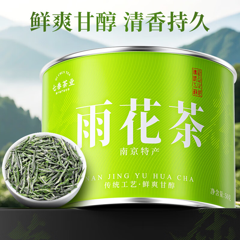 七春绿茶春茗茶南京特产雨花茶小罐品鉴装50g自己喝江苏口粮茶茶叶