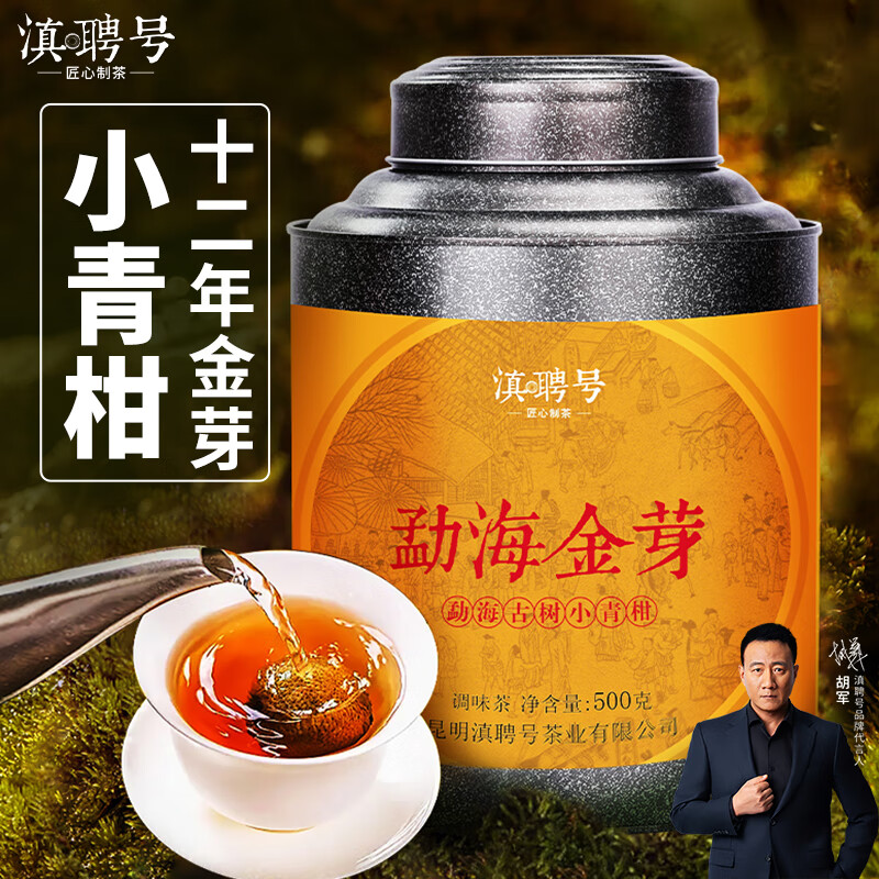 滇聘号茶叶正宗新会天马小青柑普洱茶熟茶勐海金芽古树茶柑普茶送礼500g