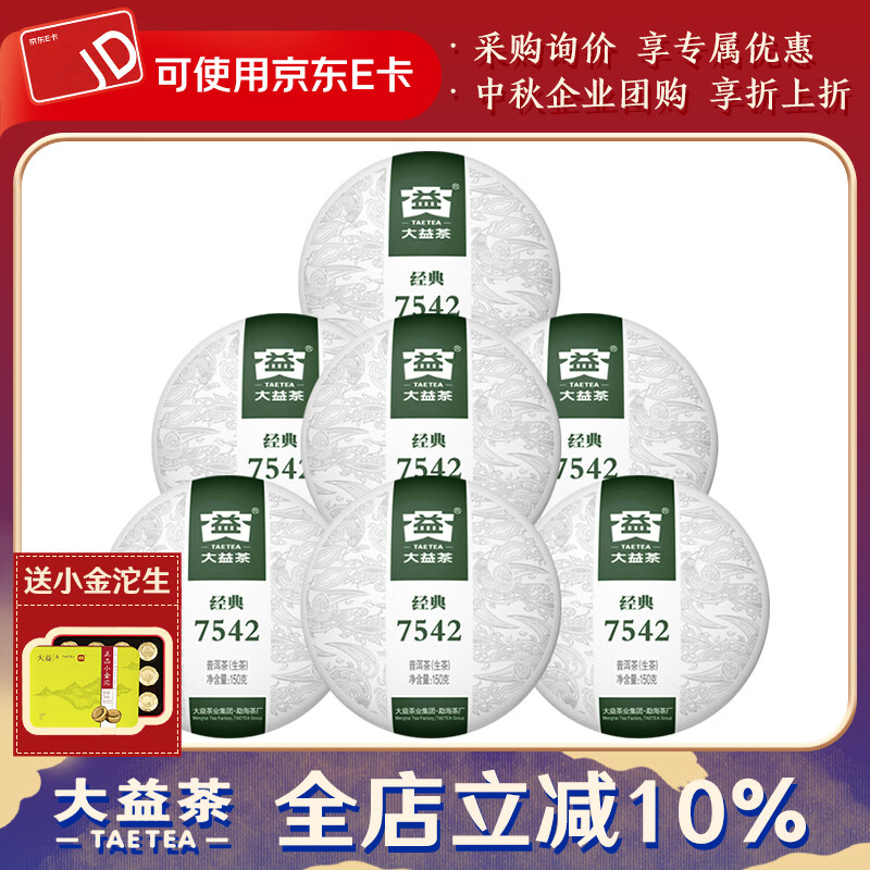 大益茶叶 普洱茶 经典标杆小饼茶 口粮茶 150g/饼 经典7542生茶7饼