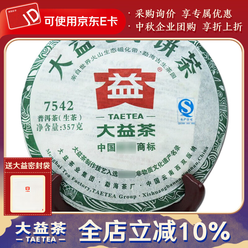 大益茶叶 普洱茶 7542 标杆生茶 随机批次 2013年旧版357克*1饼