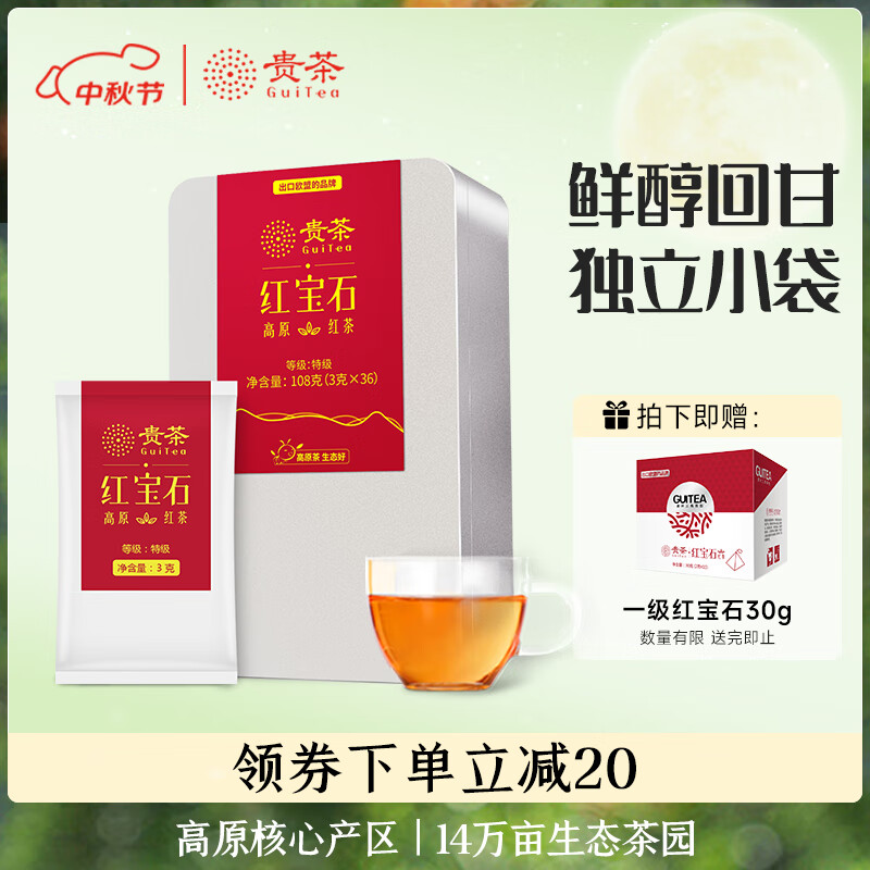 贵茶叶 高原红宝石红茶 特级红茶 自己喝中秋伴手礼铁盒装108g红茶/